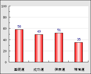 健康運 体力・健康に恵まれるか否かをあらわします。先天的に健康に恵まれても、これが悪いと次第に病弱となり、種々の病気に悩まされやすくなります。 52点