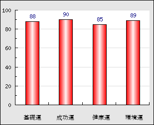 成功運 目的に対する成功運の強さをあらわします。この点数が高いほど自分の思い通りに成功し、逆に悪いと逆境・批判・障害などに苦心します。 90点