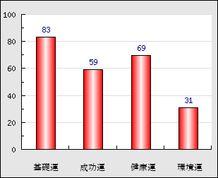 環境運 家庭や職場等での援助運・環境運を司ります。これが良いと配偶者や子供・職場の同僚などから助力が得られやすく、悪いと波乱・不和・孤独などがあります。 31点