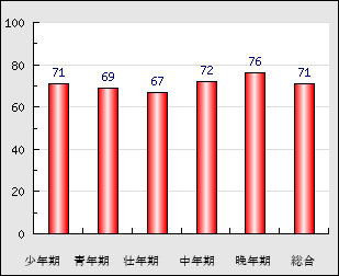 | 晩年期 | 65歳~ | 70.9点+ 1.1 |