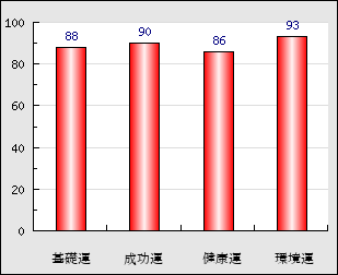 成功運 目的に対する成功運の強さをあらわします。この点数が高いほど自分の思い通りに成功し、逆に悪いと逆境・批判・障害などに苦心します。 90点