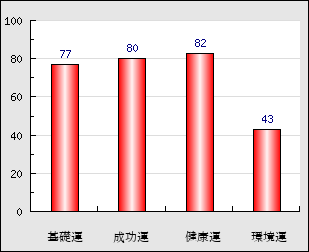 環境運 家庭や職場等での援助運・環境運を司ります。これが良いと配偶者や子供・職場の同僚などから助力が得られやすく、悪いと波乱・不和・孤独などがあります。 43点