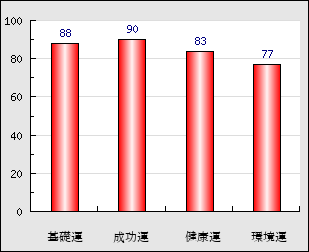 成功運 目的に対する成功運の強さをあらわします。この点数が高いほど自分の思い通りに成功し、逆に悪いと逆境・批判・障害などに苦心します。 90点