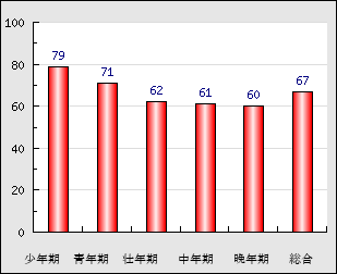 | 中年期 | 50~65歳頃 | 61点- 6.0 |